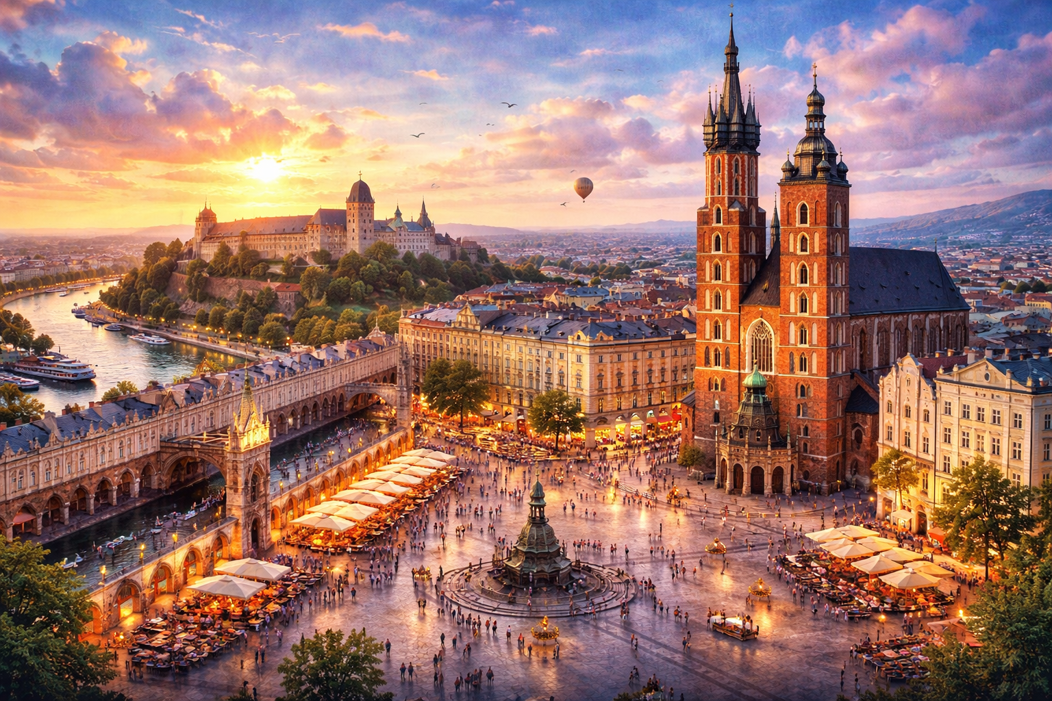 🏛️ 3️⃣ Pagrindinė turgaus aikštė (Rynek Główny)