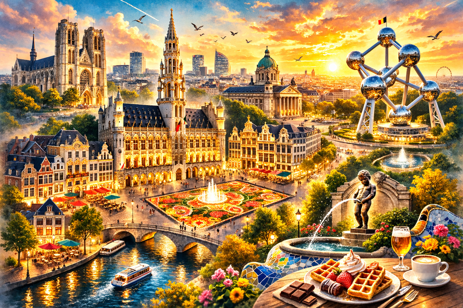 ✨ 2. Viena gražiausių aikščių pasaulyje -Miesto centrinė aikštė – Grand Place – yra įtraukta į UNESCO pasaulio paveldo sąrašą. Ypač įspūdingai ji atrodo vakare, kai pastatai apšviečiami auksine šviesa.