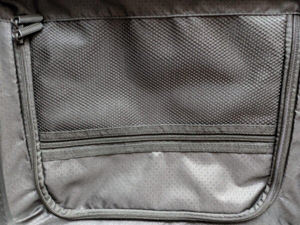 - Kairėje pilnai užtraukiamas, su kišenėle;